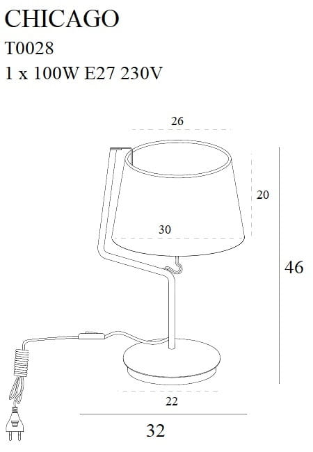 Produkt dostarczany jest bez żarówki, co daje możliwość dopasowania rodzaju i barwy światła do indywidualnych potrzeb użytkownika. Lampa Chicago to propozycja dla osób ceniących prostotę formy, trwałość wykonania oraz łatwość integracji z różnymi stylami wnętrz — od nowoczesnych po klasyczne. Dzięki neutralnej kolorystyce stanowi doskonałą bazę dla dalszej aranżacji oświetleniowej.