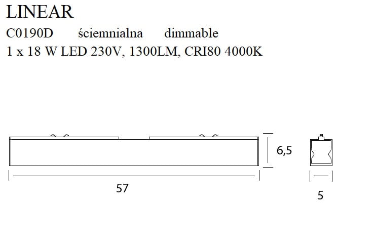 Moc/Power: 1 x 18W LED 230V, 1300 LM,CRI80 4000K
