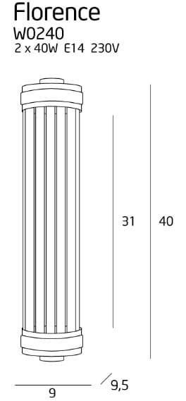Ze względu na kompaktowe wymiary — wysokość 40 cm i średnica 9 cm — kinkiet nadaje się do montażu w miejscach, gdzie liczy się estetyka przy zachowaniu oszczędności przestrzeni. Klasa ochrony IP20 predestynuje oprawę do użytku wewnętrznego, natomiast stylizacja nawiązująca do estetyki art deco sprawia, że lampa staje się efektownym akcentem wnętrza inspirowanego „złotą erą” designu.