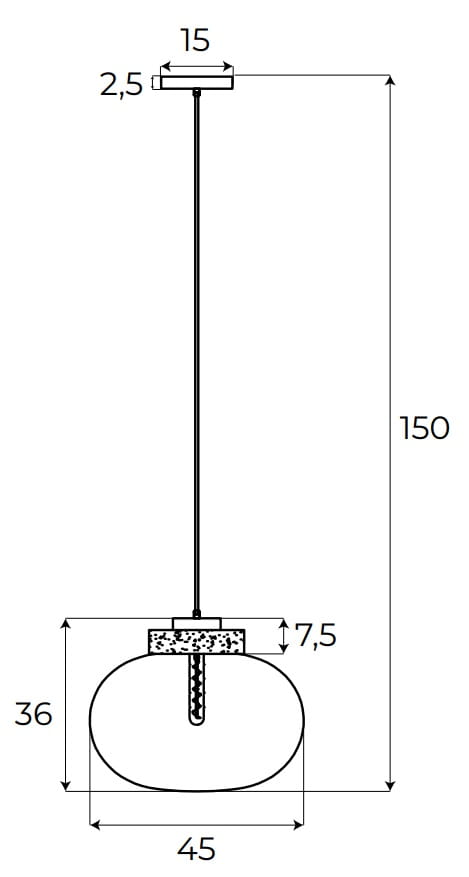 - Wymiary: średnica 45 cm, wysokość klosza 36 cm, długość maks. 150 cm