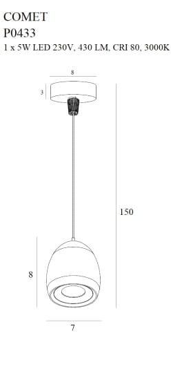 Moc/Power: 1 x 5W LED 230V, 430 LM, CRI 80, 3000K