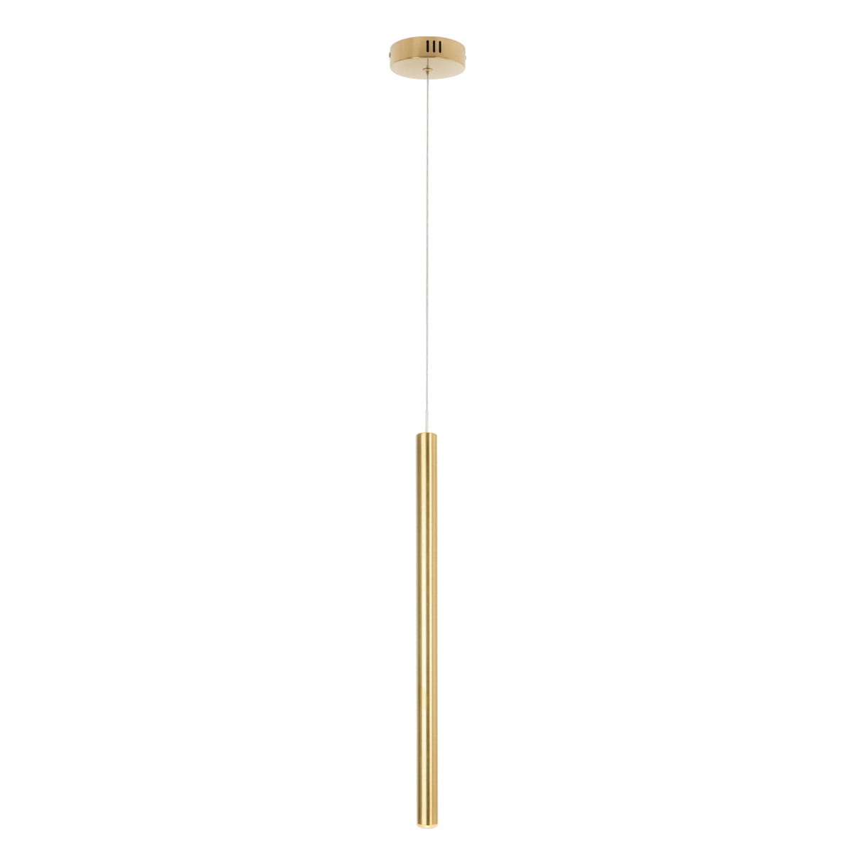 Pojedynczy zwis złoty Organic Maxlight to eleganckie i nowoczesne oświetlenie zaprojektowane z myślą o wnętrzach wymagających subtelnego luksusu. Dzięki wykończeniu w szczotkowanym złocie lampa doskonale komponuje się z salonami, jadalniami oraz przestrzeniami komercyjnymi, wprowadzając ciepły, przyjemny klimat. Smukła, podłużna rurka o średnicy 2,5 cm oraz całkowita wysokość regulowana do 190 cm pozwalają na precyzyjne dopasowanie jej do aranżacji pomieszczenia.