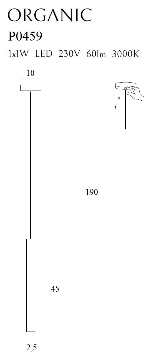 - Moc i źródło światła: 1 x 1W LED zintegrowane