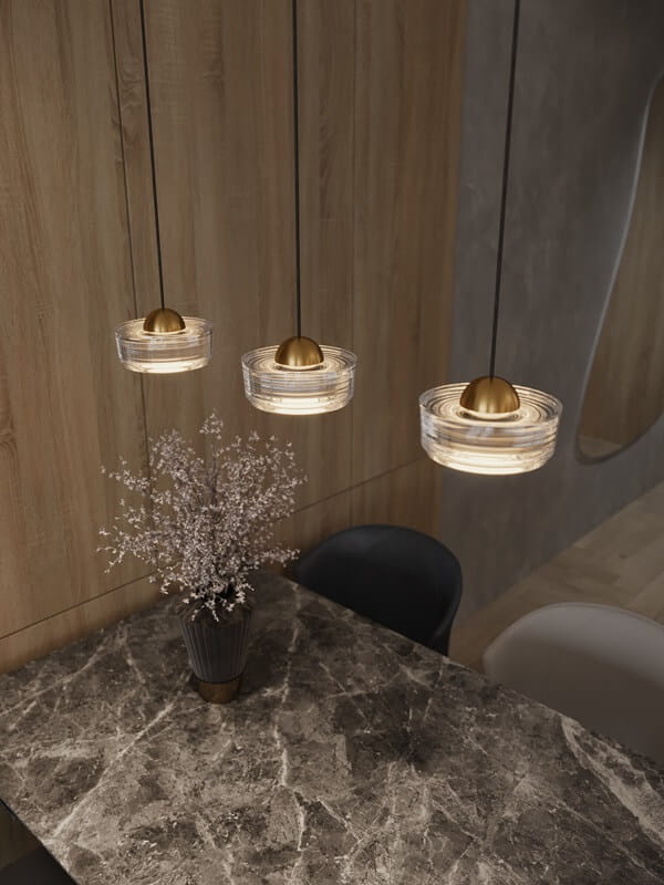 Potrójna lampa wisząca na listwie, złote akcenty, nad stół 22W LED LIPARI P0545 MAXLIGHT